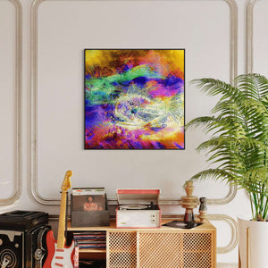 Every piece is built through a process of layering—combining gestural strokes, textured surfaces, and bold color contrasts. I often work with mixed media, incorporating oil, acrylics, inks, digital photography, and sometimes metallic accents to create depth and luminosity. My approach is innovative, intuitive, and energetic, allowing the painting to evolve organically, with each layer adding complexity and emotional resonance. The result is a body of work that feels alive, with swirling, shimmering, and whole movement.