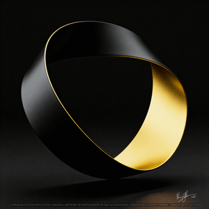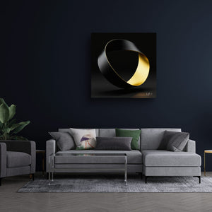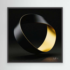 The play of light is crucial. The gold interior reflects and refracts light, creating an illusion of depth and movement, while the matte black absorbs light, focusing the viewer's attention on the gold. The composition is minimalist yet impactful, designed to evoke contemplation and a sense of wonder. "Eternal Embrace" invites viewers to explore the concept of infinity and discover beauty in the continuous flow of existence.