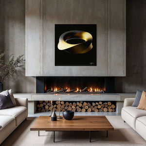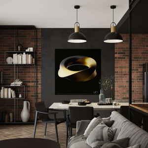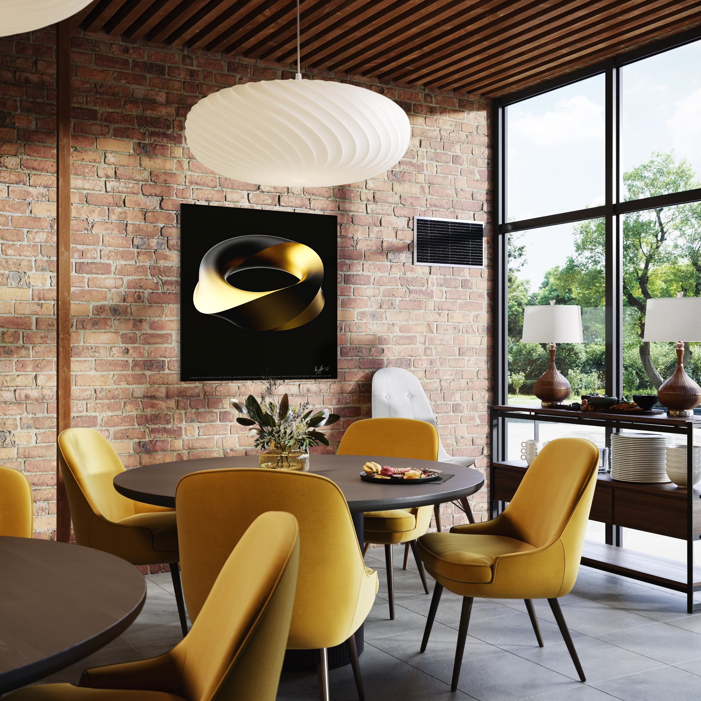 From my perspective, this piece represents a seamless fusion of form and light. The artwork features a captivating, three-dimensional torus, its surface rendered with a gradient of rich, metallic gold against a velvety black backdrop. The primary technique employed is digital sculpting and rendering, which allows for precise control over the interplay of light and shadow, as well as the meticulous creation of smooth, reflective surfaces that define the form.