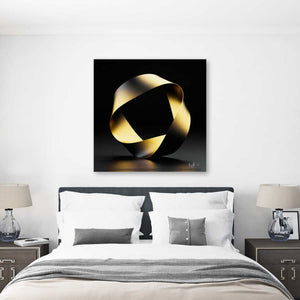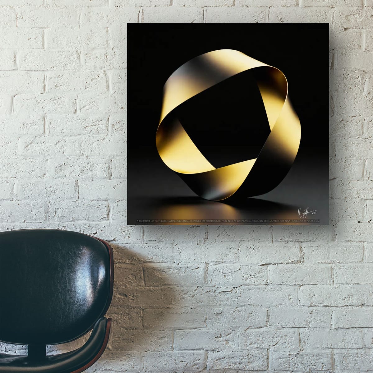 As an artist, I envisioned a mesmerizing dance of light and form when creating this artwork. The "Golden Loop" represents the continuous flow and interconnectedness of life. The sculpture, appearing to float in the void, captures the eye with its elegant curves and the play of light across its metallic surface.